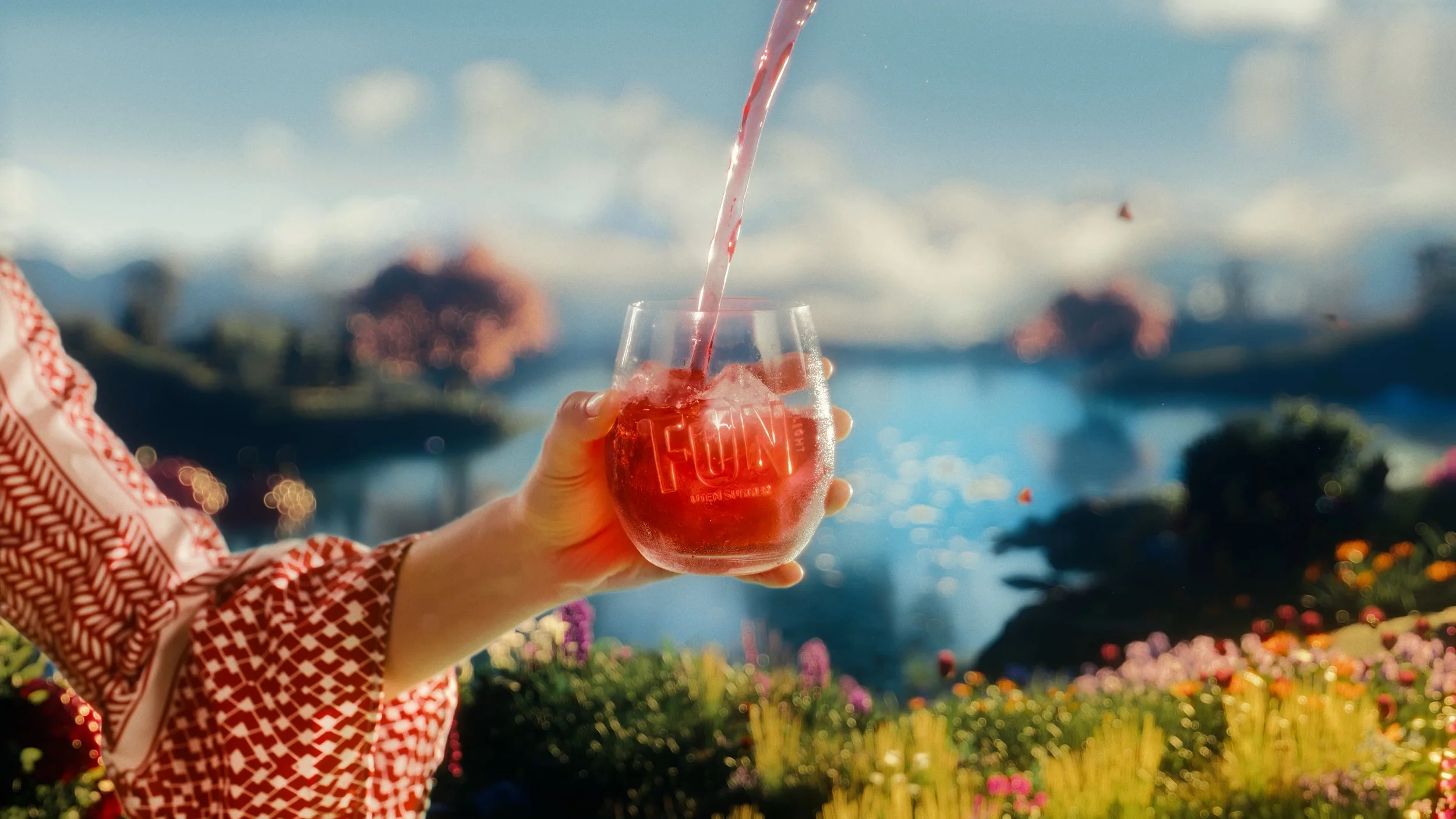 Når man drikker FUN Light, åpnes en portal til en ny verden; FUN Light-verden. Her flyter elver av frisk saft, alltid klar til å drikkes, og isbitene som driver nedover elven smelter aldri. Snille bier, fulle av deilig råsaft, surrer rundt med frukt og bær. Sommerfugler svever rundt og pollinerer landskapet med sitt gode humør. Overalt vokser perfekt modnet frukt og bær på frodige planter.